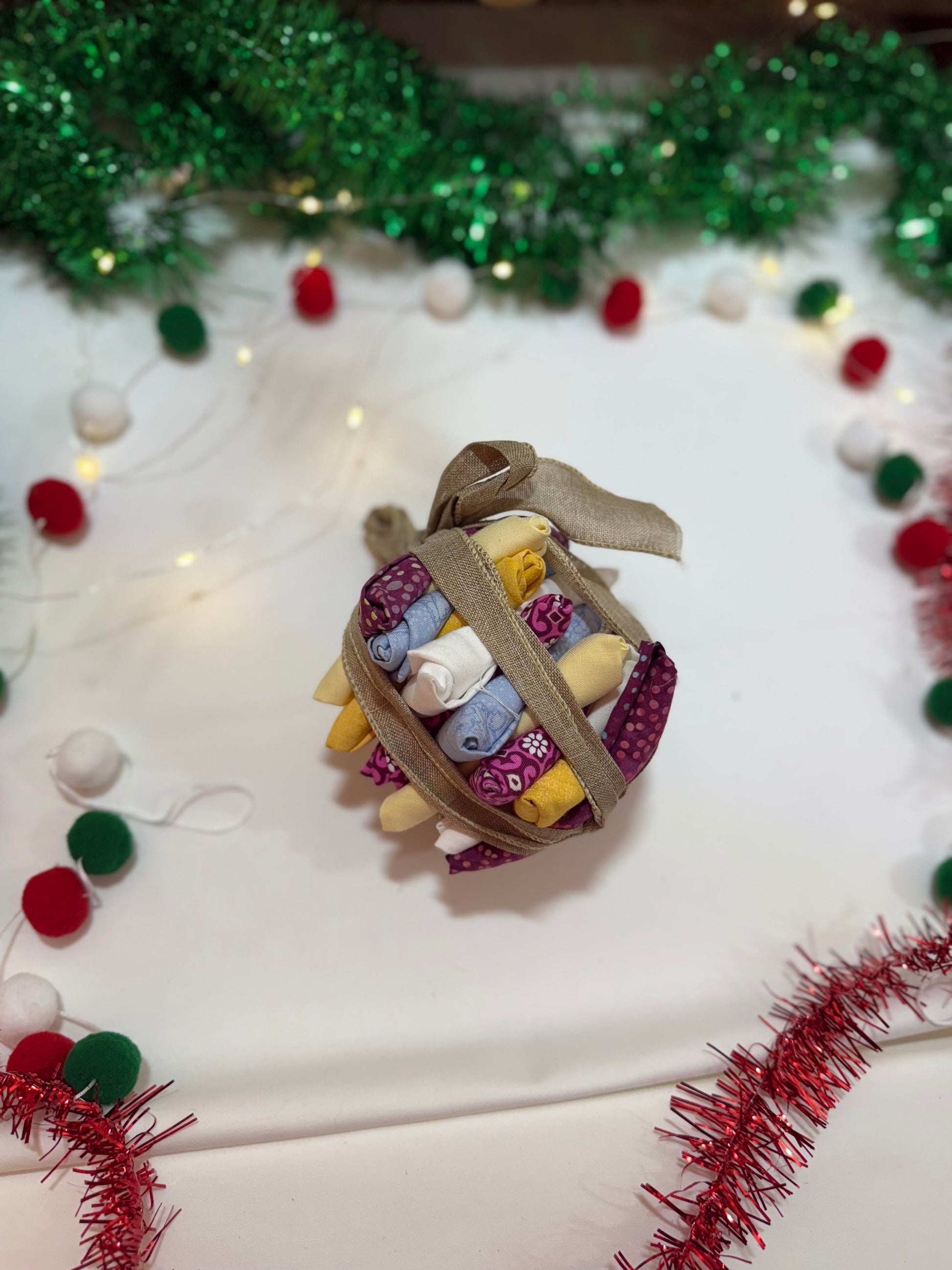 Warm golds, glowing purples, soft blues, and creamy whites come together in this vibrant, cheerful bundle—reminiscent of colorful vintage Christmas lights and festive hearthside gatherings. A delightful choice for scrappy projects, seasonal décor, stockings, and quilts that sparkle with personality.