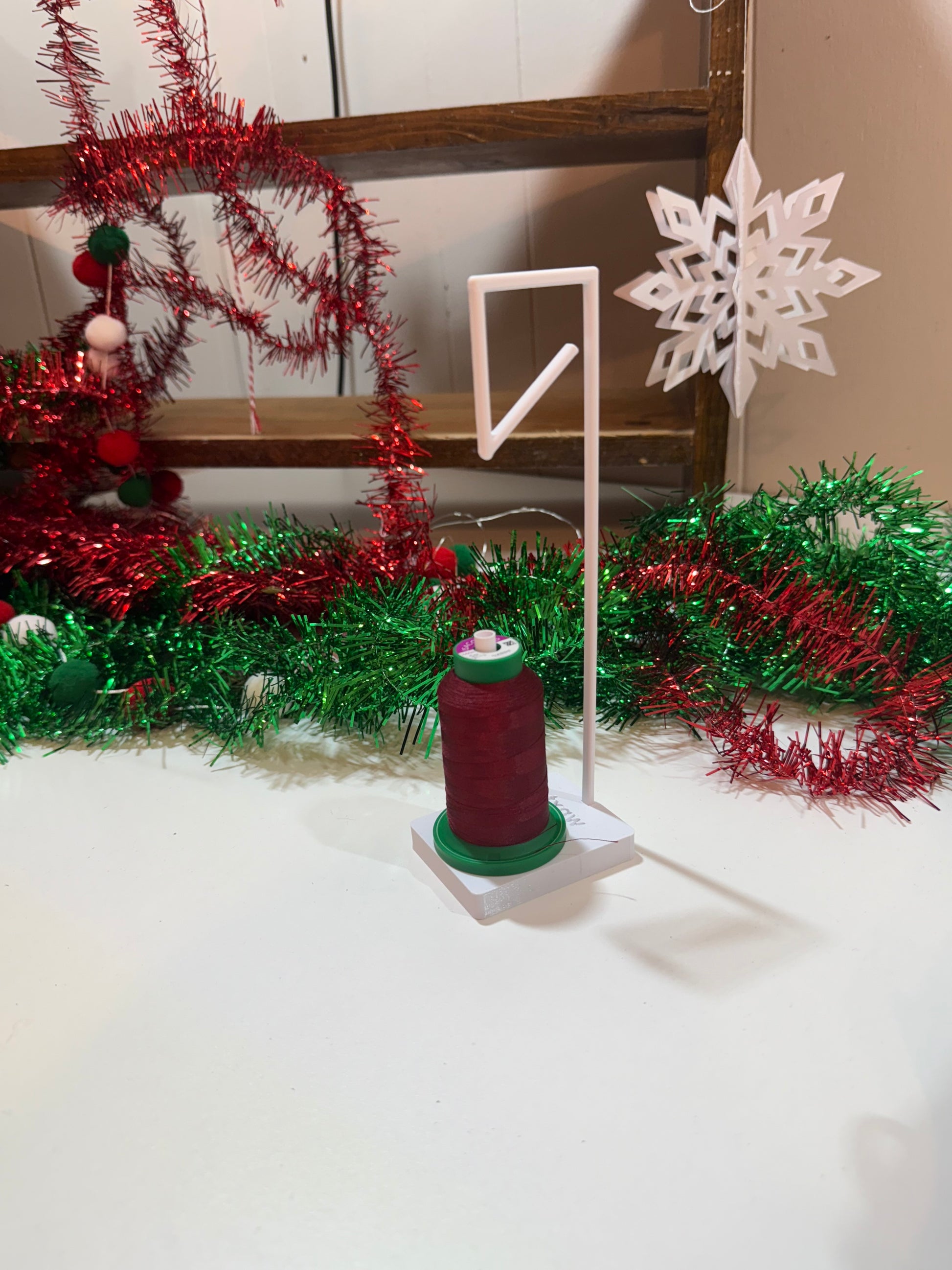 Crafted with a sleek, stable base and an elevated guide arm, this portable stand helps prevent tangling, jerking, and uneven tension—making it ideal for large cones, specialty threads, or any spool that doesn’t fit your machine’s built-in holder.